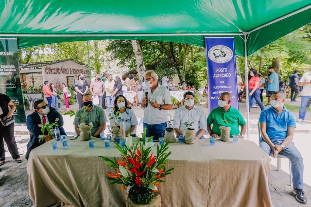 A solenidade foi encerrada com a participação de crianças do Residencial Nice Oliveira, que ajudaram no plantio de mudas de plantas nativas. Estiveram presentes o conselheiro do Conselho Nacional da Reserva da Biosfera, Boisbaudran Imperiano, e o vereador Bruno Farias, além do diretor do Parque, Rodrigo Fagundes.