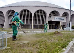 A Autarquia Municipal de Limpeza Urbana (Emlur) e a Secretaria de Meio Ambiente (Semam) da Prefeitura Municipal de João Pessoa (PMJP) realizam ações de limpeza no ginásio de esportes “O Ronaldão”, no bairro do Cristo Redentor. O local será utilizado para a realização da vacinação contra a covid-19, prevista para iniciar nesta quarta-feira (20).