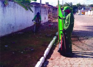 Os serviços executados pela equipe do Departamento de Tratamento e Disposição Final de Resíduo são de roço, capinação, varrição, coleta e pintura de meio fio, além do recolhimento de entulho e poda em pontos de acumulo inadequado de resíduos.