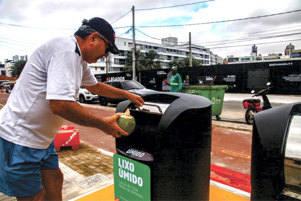 A operação chama a atenção da população. Para Roberto Costa, que trabalha em um quiosque na praia, os coletores “ficaram uma beleza”, opinou. Ele contou que está descartando os resíduos corretamente. “Aos poucos, eu vou despejando os cocos e os restos de alimentos e embalagens, nos contentores de resíduos úmidos”.