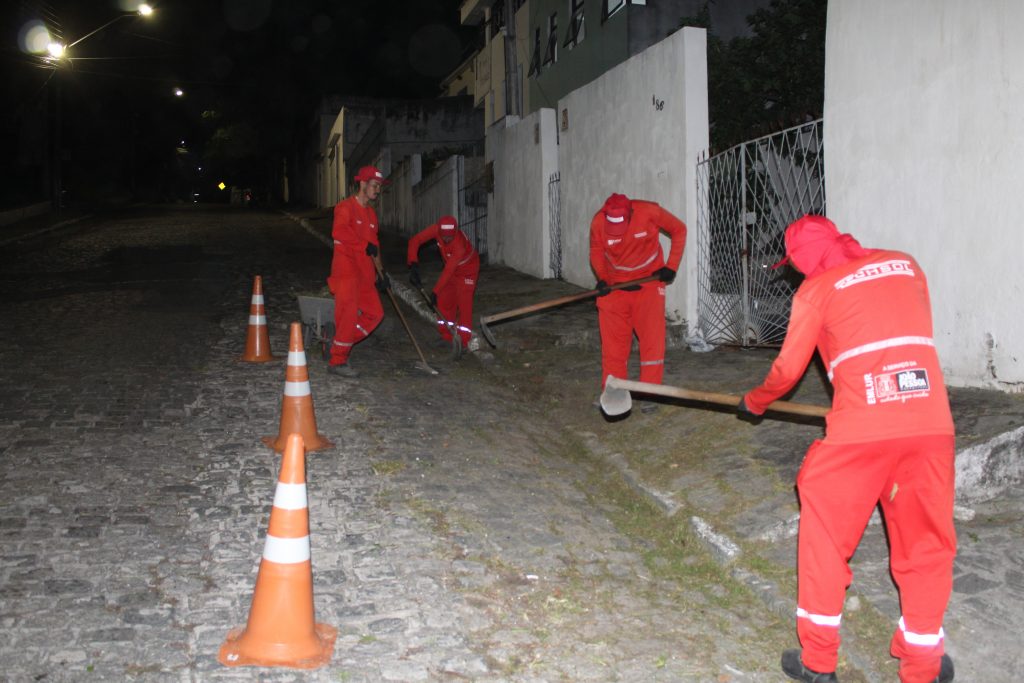 A Autarquia Especial Municipal de Limpeza Urbana (Emlur) iniciou nesta segunda-feira (24) os serviços de zeladoria nas ruas do Centro, em preparação para a Festa das Neves, que começa com a programação religiosa, na próxima quinta-feira (27). As ações de capinação, roçagem e pintura de meio-fio são realizadas à noite para evitar transtornos no tráfego do local.