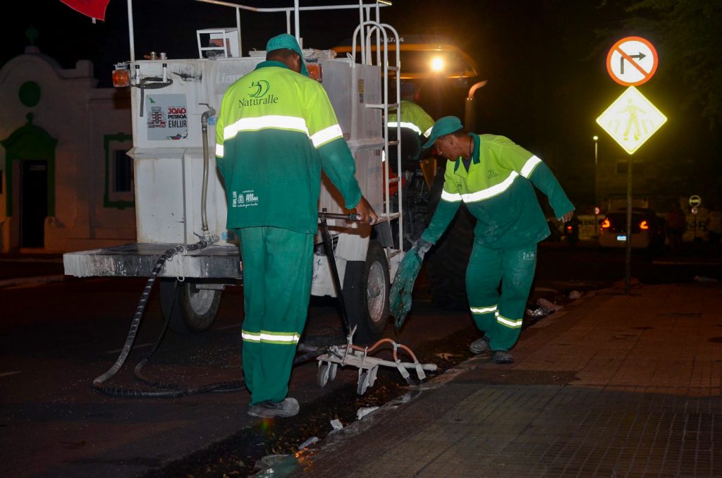 As ações são realizadas à noite para não atrapalhar o tráfego de veículos na região central da cidade. Além disso, quando há uma grande quantidade de veículos estacionados nas ruas, é inviável a realização dos serviços.