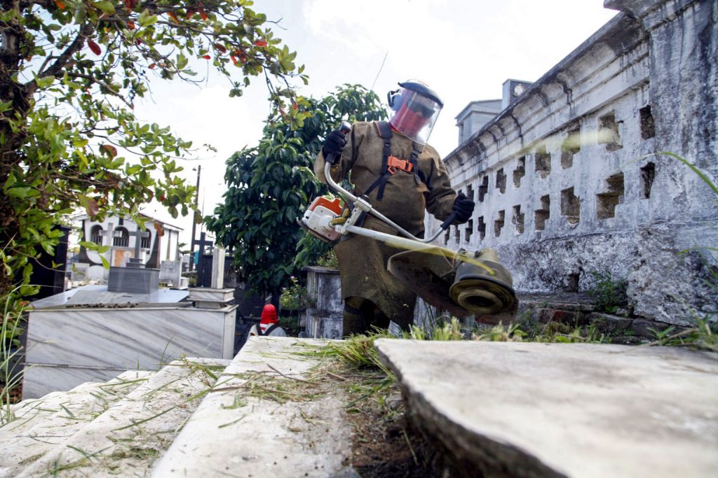 Em apoio à Secretaria de Desenvolvimento Urbano (Sedurb), a Emlur também realiza os serviços de zeladoria nos cemitérios públicos. No final de semana, as ações foram executadas nos cemitérios Santa Catarina (Bairro dos Estados) e Senhor da Boa Sentença. Nesta segunda-feira (30), o serviço é feito no Cemitério de Muçumagro.