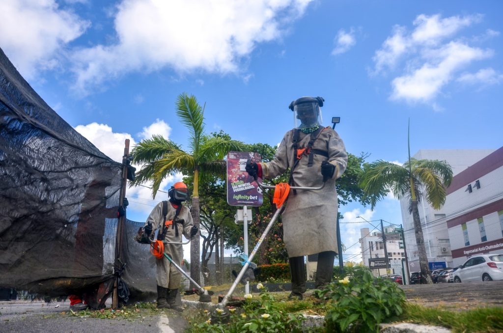 Os serviços de roçagem, capinação, varrição e pintura de meio-fio estão sendo realizados nos seguintes locais: Parque do Sol, corredores do Centro, Novo Milênio, Geisel, Perimetral Sul e principal do João Paulo II.