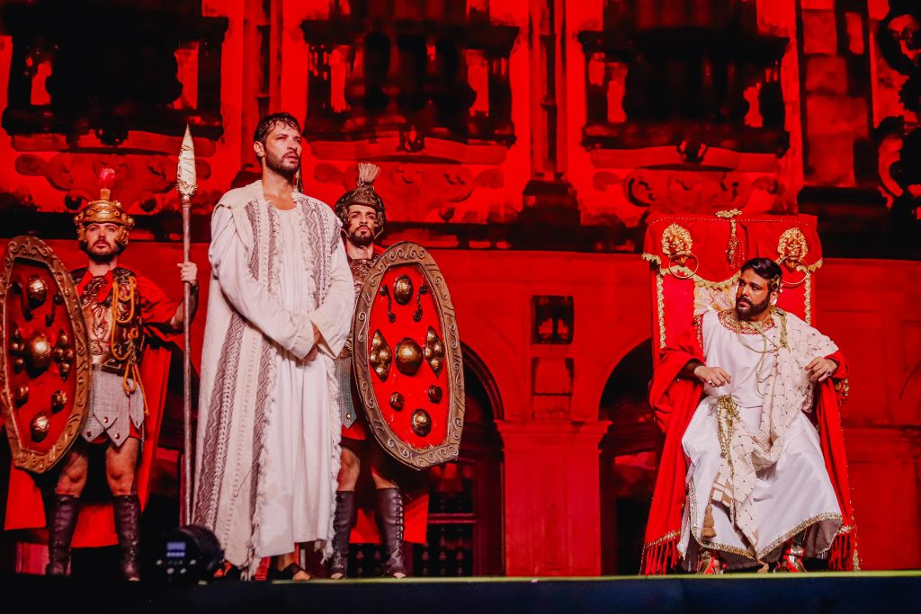 A Fundação Cultural de João Pessoa (Funjope) encerrou, neste sábado (30), as encenações da Paixão de Cristo 2024, com texto de Everaldo Vasconcelos e sob a direção geral de Edilson Alves. Foram três noites de muita emoção, no Adro do Centro Cultural São Francisco, reunindo um grande público que, mesmo sob chuva, prestigiou o evento que lembra a morte e ressurreição de Jesus.