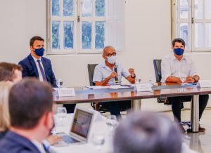 O prefeito Cícero Lucena e o vice-prefeito Leo Bezerra receberam, na tarde desta quarta-feira (3), os gestores e representantes de 11 cidades dispostas a integrar, junto à Capital, o consórcio de municípios da Região Metropolitana de João Pessoa, batizado de Metro+. O encontro aconteceu no Paço Municipal e foi o espaço para definição do modelo jurídico a ser adotado, além da assinatura do protocolo inicial.