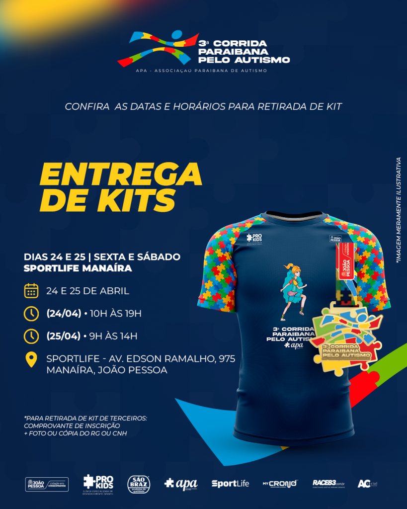 devem ficar atentas para a entrega dos kits que será realizada nesta sexta-feira (24) e sábado (25). A retirada será na loja SportLife, localizada na avenida Edson Ramalho, no bairro de Manaíra.