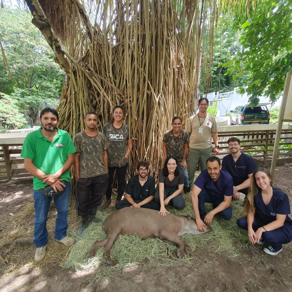 Equipe do Parque Arruda Câmara presta assistência à anta vítima de queimaduras e atropelamento
