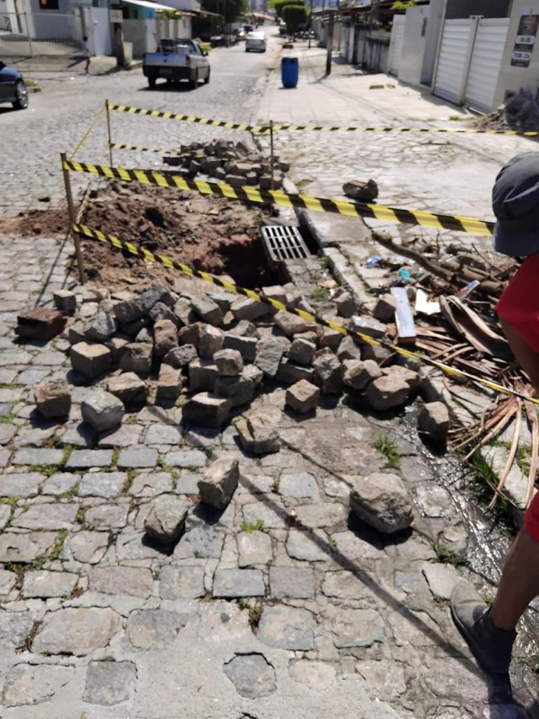 As ações de manutenção na rede de drenagem são limpeza e desobstrução de galerias com remoção de entulhos nas localidades de Castelo Branco, Valentina, Muçumagro, Varadouro, Altiplano e Mangabeira.