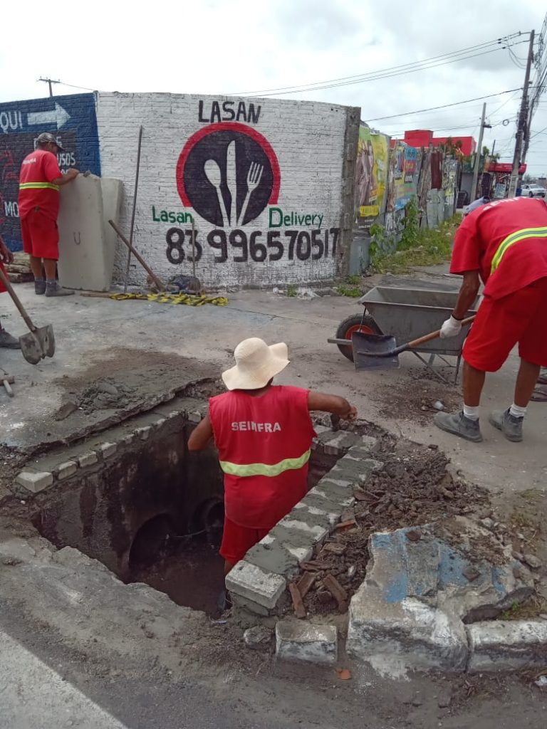 Os trabalhos na rede de drenagem em execução são remoção de entulhos e limpeza de galerias, além de abertura de lançamentos nos bairros do Cristo, Cuiá, Geisel, Costa e Silva, Ernani Sátiro, Funcionários, Colinas do Sul, Mangabeira, Seixas, Cabo Branco, Bancários e Bairro dos Novais.