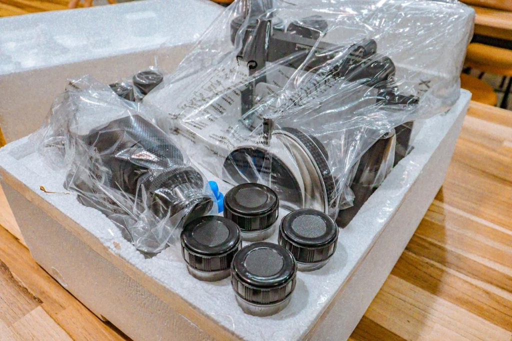 Os kits são compostos de microscópios digitais de alta potência, tubos de ensaio, conjunto de reagentes, balança de precisão digital, conjunto de lâminas, esqueleto humano em resina plástica rígida, fogareiro portátil à álcool, kit de circuito elétrico de Física, lâmpada luz negra, entre dezenas de outros equipamentos.
