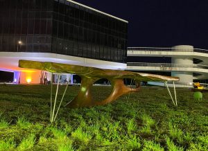 Continuando, ela disse que a primeira peça confeccionada por Grisi, em madeira, foi uma mesa de centro feita para um bar no bairro de Manaíra. “A busca de material para essa obra, o levou a descobrir as madeiras de descarte urbano e há 15 anos, o designer vem mudando o destino dessas árvores. Ao invés de sucumbirem no aterro sanitário, elas ganham vida em suas mãos, na forma de móveis escultóricos e esculturas, constituindo-se em peças ecologicamente sustentáveis”, afirmou.