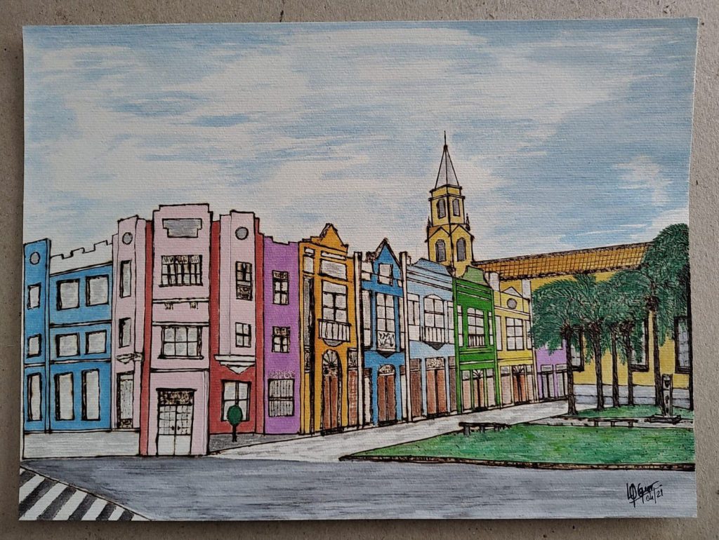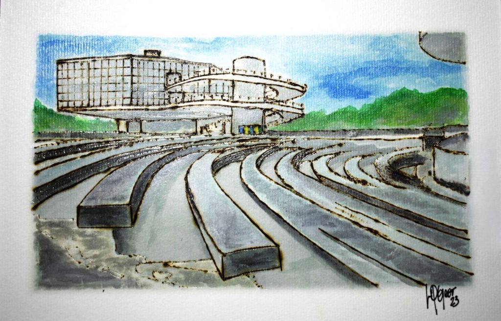 ‘Cores da Cidade’ – LQGeor (Orlando Quadros). Inédita técnica da pirografia em papel, traz um olhar sensível para as paisagens urbanas de João Pessoa.