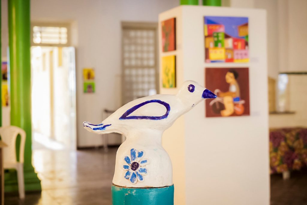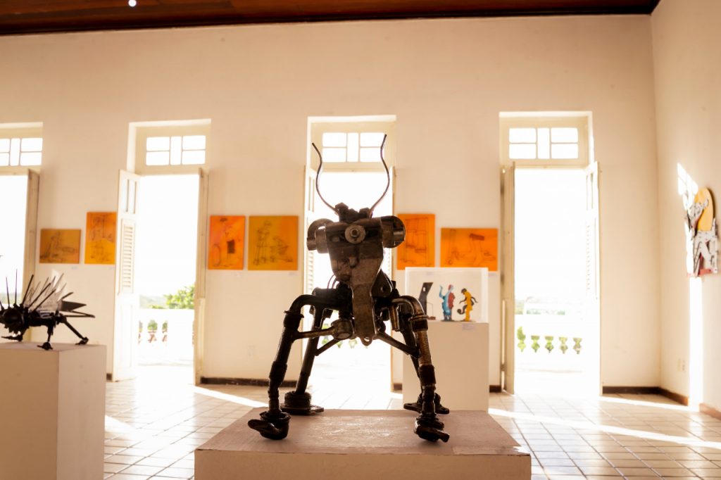 O artista Davi Queiroz também está expondo diversas obras. “Quero primeiro agradecer ao olhar do Marcus Alves, que está sempre movimentando o equipamento cultural. Eu vim com uma linguagem de costume. Minha pegada é um mergulho sempre no povo, seja feira, identidade regional. Minha palheta é a busca social como identidade. Eu venho com interior, brincadeira de menino”, explicou. Algumas esculturas têm o cunho regional com cerâmica e cimento, entre esculturas e pinturas.