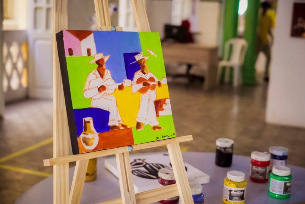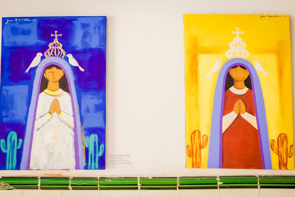 “Estas obras representam vida, esperança. Também trabalho muito em cima do jogo cromático. Acho que temos que deixar uma linguagem que pulse no olhar do espectador, que venha emocionar e interagir”, destacou a artista visual Denise Costa. Seu trabalho se aproxima da Arte Naif, remetendo às identidades do ser, com movimento, trazendo a ideia da multiplicidade, da repetição, valorizando a temática feminina.