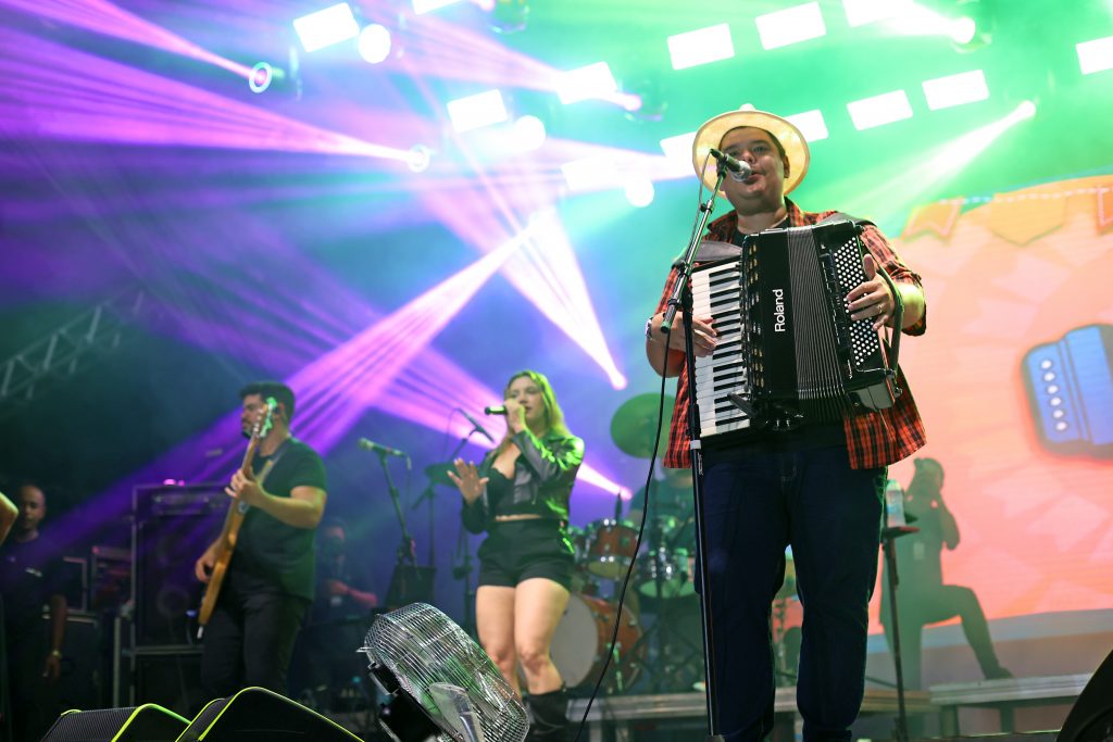 O artista Osmídio Neto subiu ao palco logo em seguida e fez o público dançar com seu repertório composto por forró pé de serra, arrasta pé, quadrilha, vaquejada e forró das antigas. “É muita alegria estar aqui numa data tão especial como hoje. Para o sanfoneiro, dia 23 é uma data muito especial. Então, estar em casa é uma satisfação. Muito obrigado à Prefeitura pelo convite”, agradeceu.