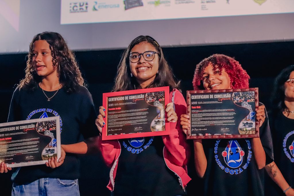 A terceira noite do FestincineJP, evento promovido pela Prefeitura de João Pessoa, através de sua Fundação Cultural (Funjope), que transforma a cidade em capital do audiovisual até o próximo sábado (01), consolidou o talento do grupo Kairós, da Escola Padre Pedro Serrão, na cena do cinema com o curta ‘Esperançar’. Nesta terça-feira (28), o prefeito Cícero Lucena celebrou o momento vivido pelos meninos e meninas, que criaram o espetáculo inicialmente para o teatro, na sala de aula, e ganhou as telas depois da gestão municipal fortalecer o projeto com a instituição Cidade da Imagem (CDI), de São Paulo, e participação do ator e diretor Jaime Monjardim.