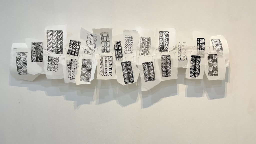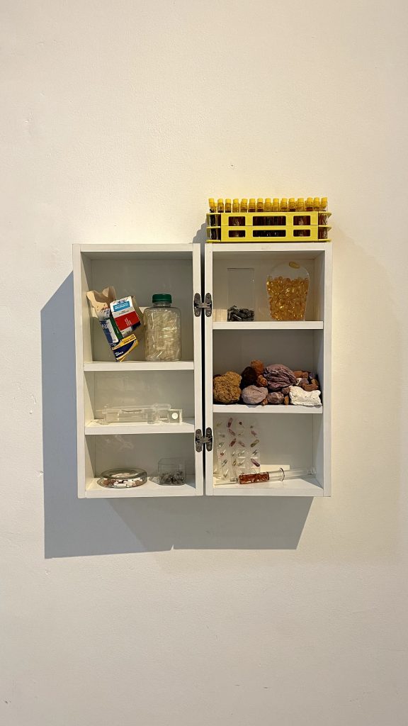 Nesta exposição, ele fala muito sobre uma ideia de cura. “Eu costumo dizer que a minha pesquisa parte sobre uma investigação social das doenças e das curas possíveis e utilizo muito materiais que se relacionam com esse universo. Então, vai ter momentos em que vou estar usando bulas de medicamentos, outra hora eu vou estar usando caixas ou construindo pílulas”, relata.