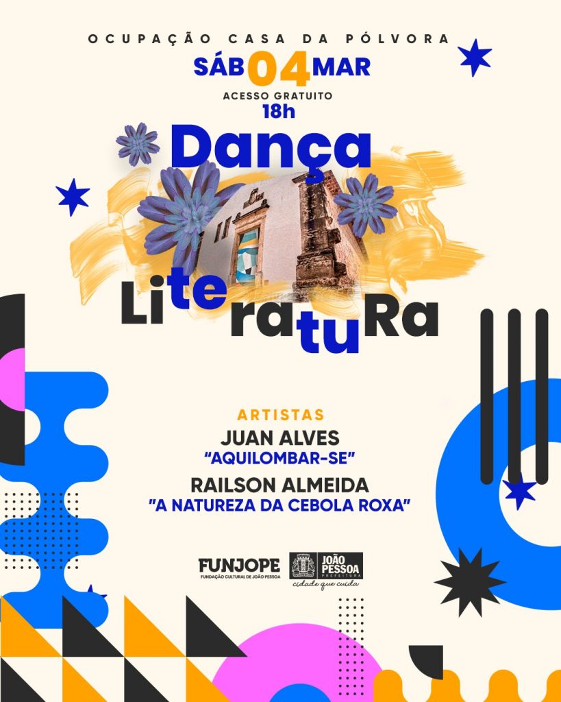 A Casa da Pólvora, no Centro Histórico de João Pessoa, recebe, neste sábado (4), a partir das 18h, duas expressões culturais referentes ao edital de ocupação do equipamento. Na programação, realizada pela Prefeitura de João Pessoa, por meio da sua Fundação Cultural (Funjope), o artista Juan Alves apresenta o espetáculo de dança ‘Aquilombar-se’, e Railson Almeida, ‘A Natureza da Cebola Roxa’, que envolve literatura.