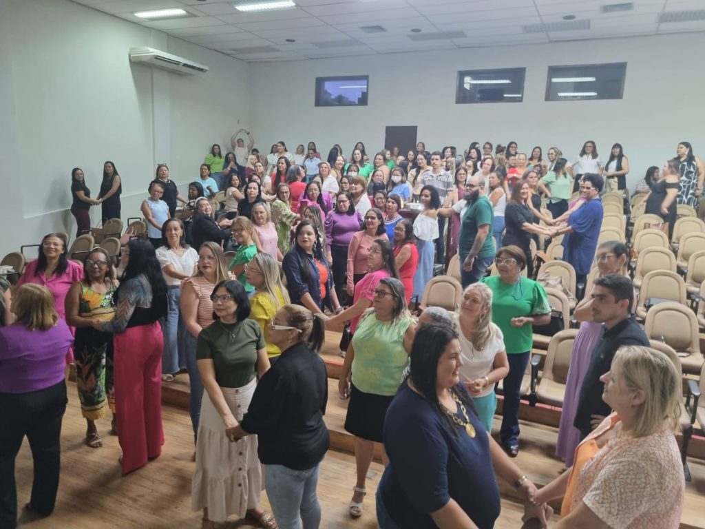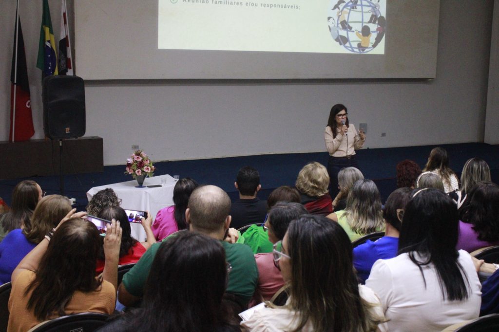 O encontro aconteceu no auditório do Centro Administrativo Municipal, em Água Fria, e contou com a presença da secretária da Educação, América Castro, e da executiva, Luciana Dias.