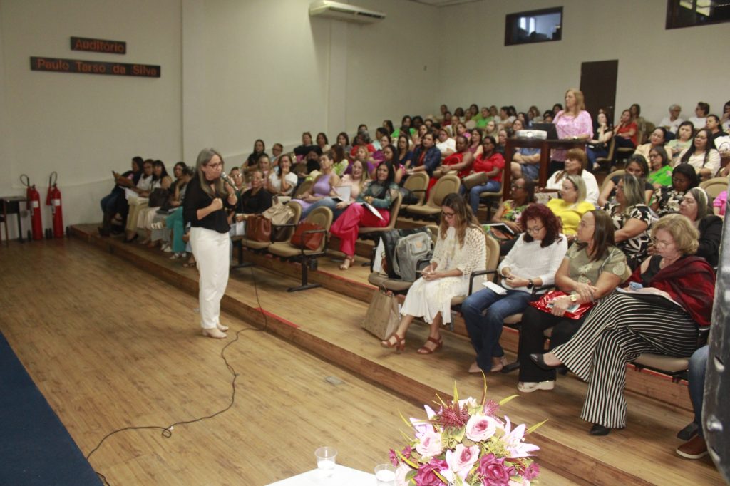 “Minha gratidão a cada uma de vocês que nos ajudam a fazer um trabalho de excelência nas nossas unidades, com nossas crianças. Fico muito feliz porque estamos conseguindo avançar e atingir nossas metas com esse trabalho realizado na Educação Infantil, no Pré I e Pré II, com essas formações em parceria com o Governo Federal e Governo do Estado”, agradeceu a secretária da Educação, América Castro.