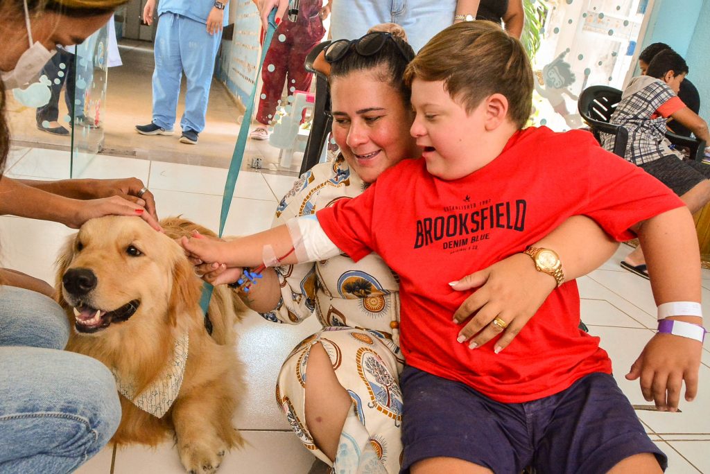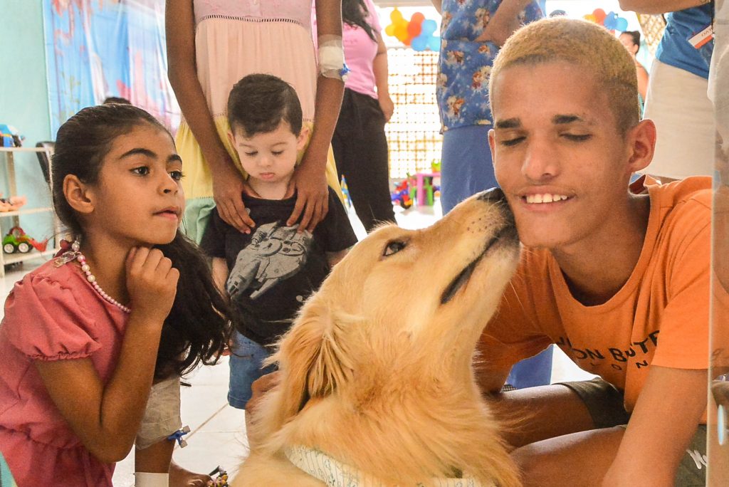 ‘Cão terapeuta’ – Um dos momentos que encantou os pequenos foi a visita do ‘cão terapeuta’. Uma das crianças que gostou da surpresa foi Pedro Silva Conrado, que aproveitou para ficar bem próximo de Hulk e fazer bastante carinho nele. “Achei super legal ele aqui. Me surpreendi que deixaram o cachorro entrar no hospital. Fiz muitos amigos durante esse período, mas quero ir para casa, lembrei da minha cachorrinha que está em casa”, falou.