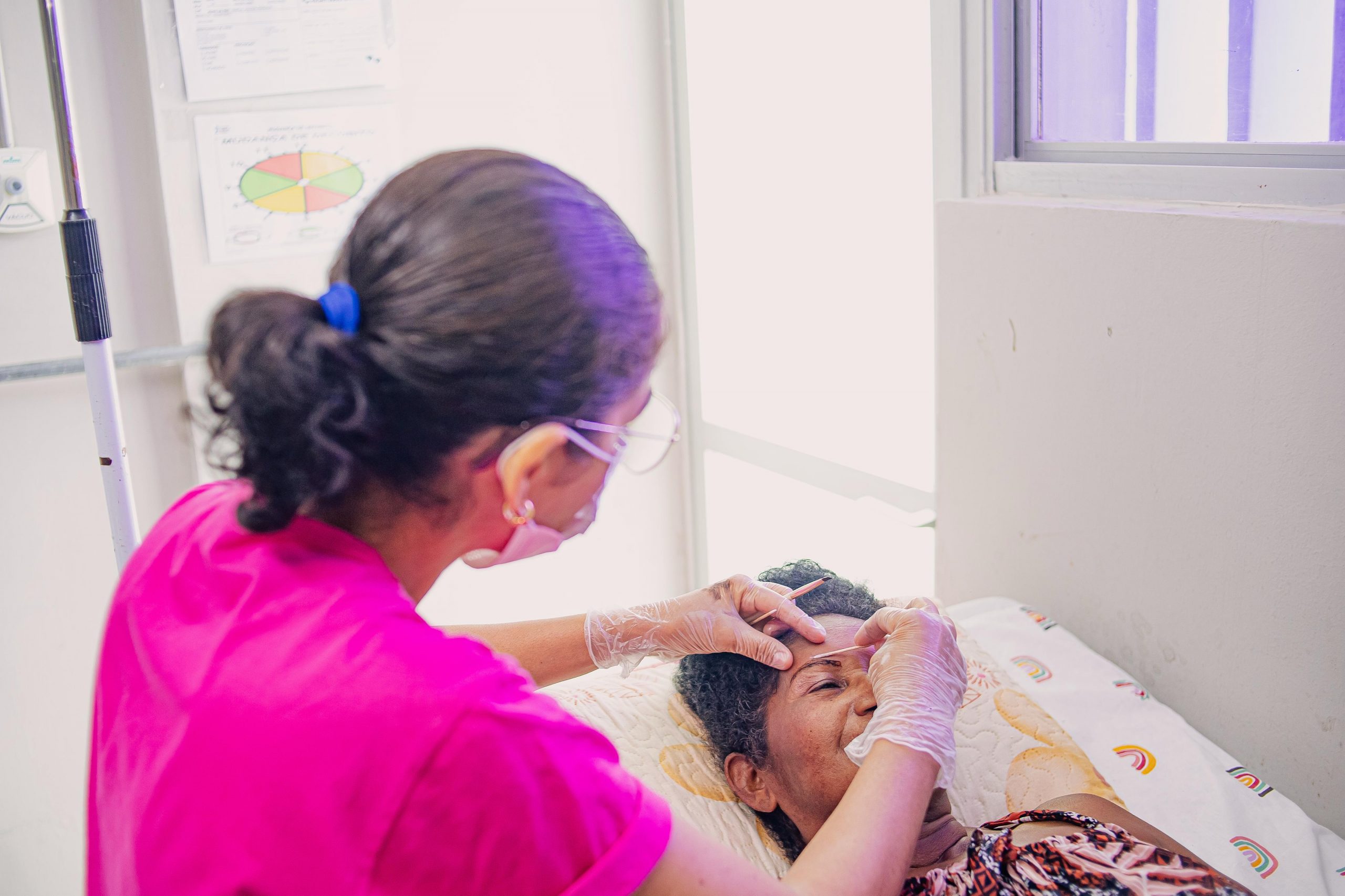 A paciente Maria José Domingo se emocionou ao receber os cuidados oferecidos pela ação. “Gostei muito. Só tenho a agradecer e pedir que Deus abençoe todos que estão trabalhando hoje”, disse.