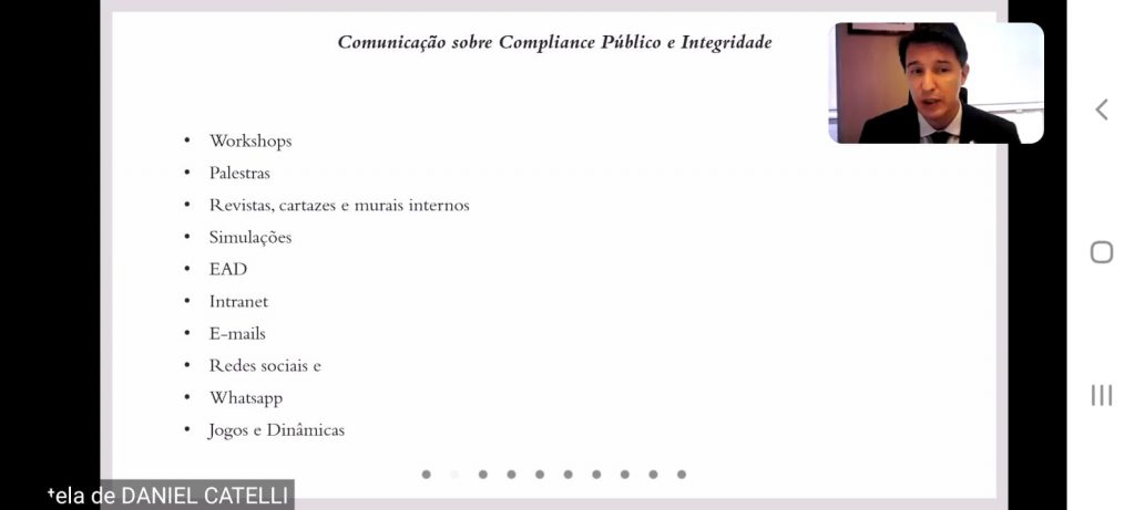 Práticas de governança – A palestra foi ministrada pelo secretário executivo adjunto do Ministério do Meio Ambiente, Daniel Catelli, que deu exemplos de ações práticas de governança e compliance que as instituições públicas devem observar. Ele destacou que, para um bom programa de integridade ser eficiente, é preciso o comprometimento da alta direção.