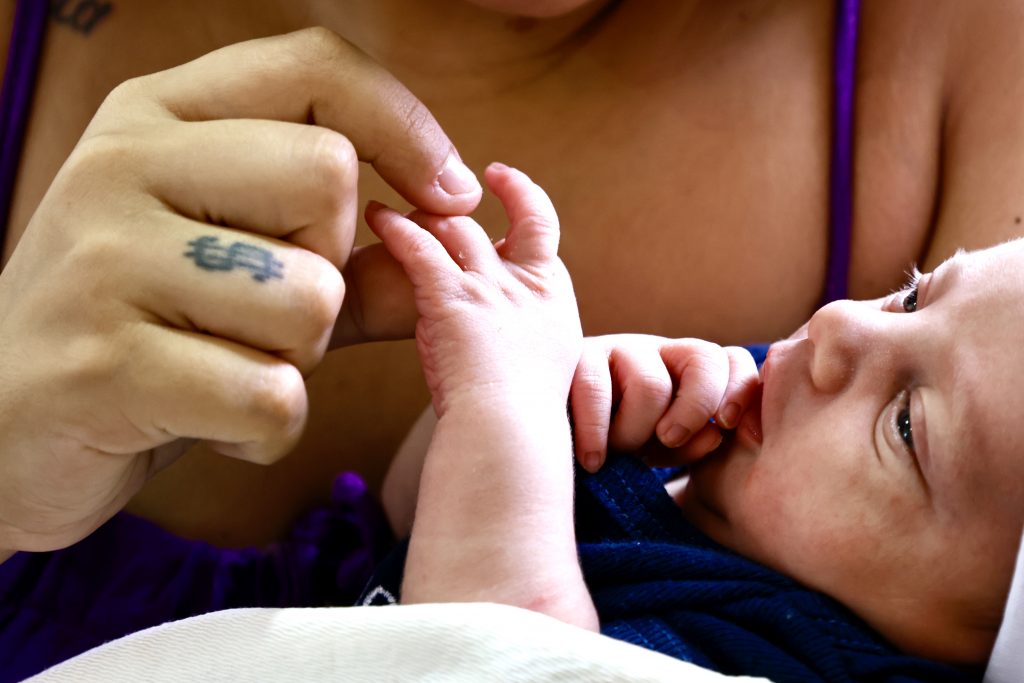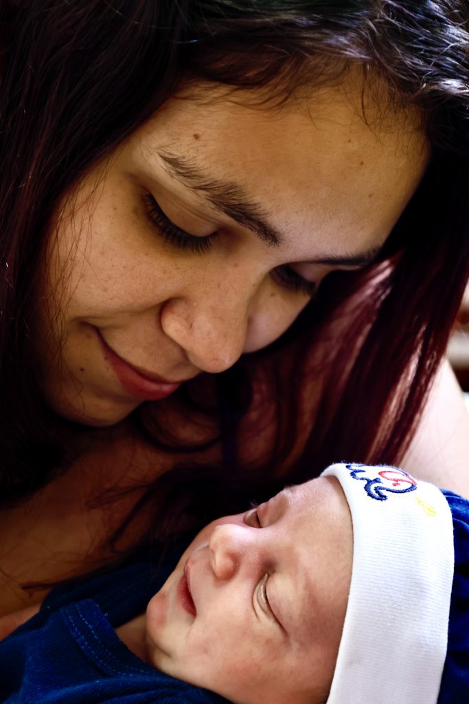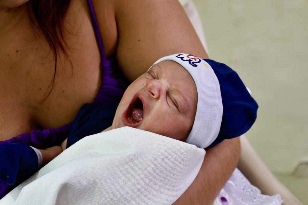 As mãos pequeninas e rosadas que buscam o seio materno na imagem abaixo são de Gael Kayros. Quando nossa equipe de reportagem chegou ao Instituto Cândida Vargas (ICV) no dia 23 de julho, o bebê que se aconchega no colo da mãe tinha apenas um dia de nascido. Tão pequeno e frágil, pesando apenas 3,2 quilos e com 48 centímetros, ainda é movido pelos instintos, o maior deles, a busca pelo alimento, que vez por outra arranca um choro encantador.