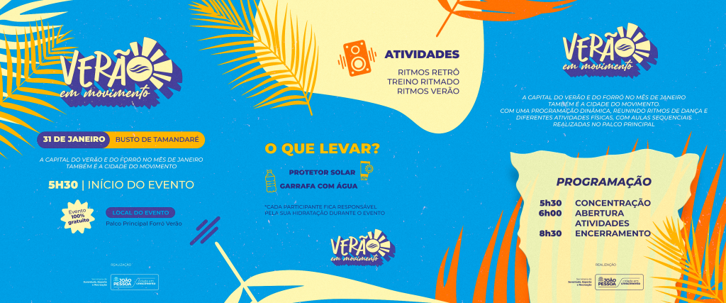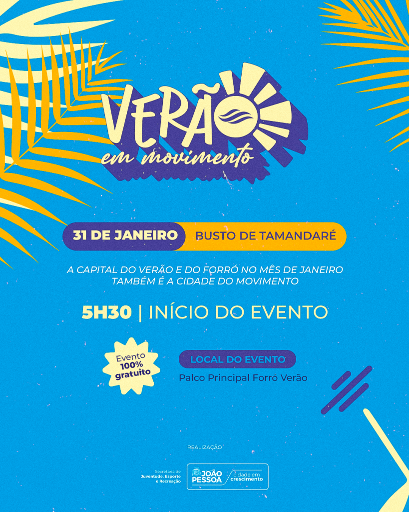 A 1ª edição do Verão em Movimento terá concentração a partir das 5h30, no Busto de Tamandaré, na orla de Cabo Branco, um dos principais cartões-postais da capital, com acesso totalmente gratuito.