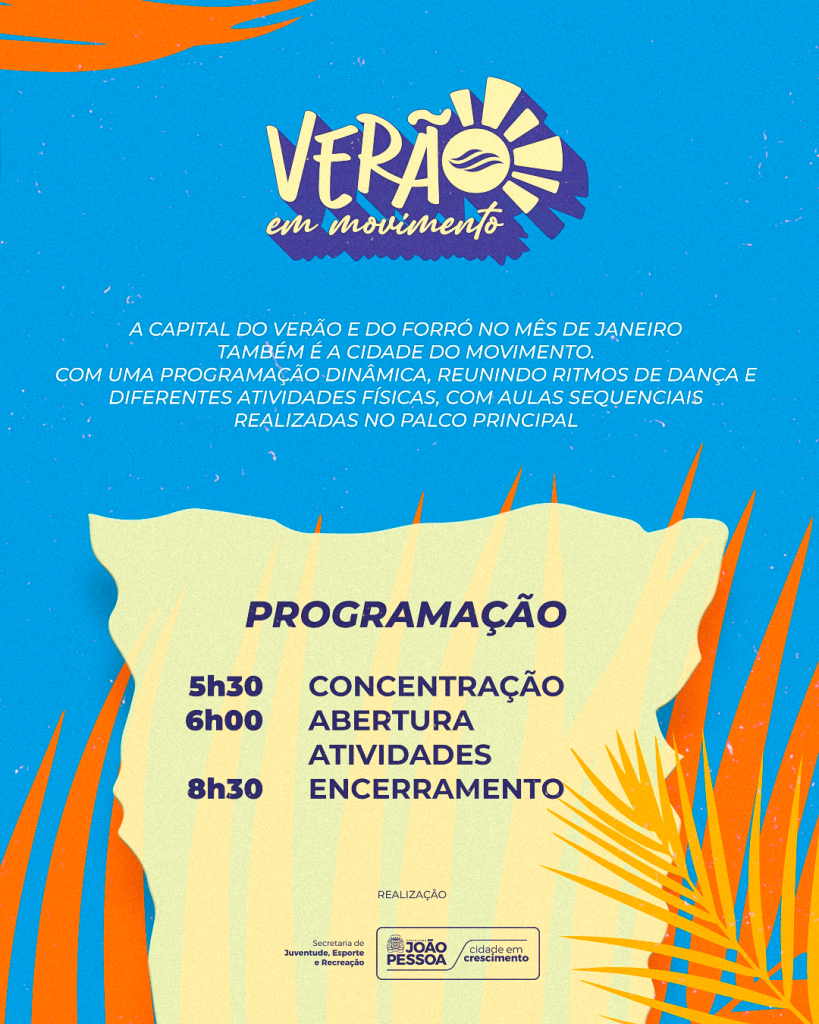 A capital do verão e do forró no mês de janeiro também é a cidade do movimento. A Prefeitura de João Pessoa, por meio da Secretaria de Juventude, Esporte e Recreação (Sejer), promove, no próximo sábado (31), mais uma grande ação voltada ao incentivo à prática esportiva e ao cuidado com a saúde da população.