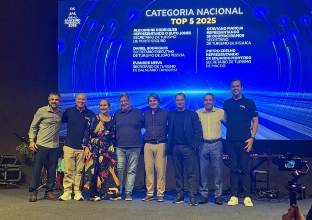A desenvoltura da política de turismo desenvolvida pela Prefeitura de João Pessoa, por meio da Secretaria de Turismo, nos últimos anos têm colocado a Capital nas maiores e principais prateleiras das operadoras de turismo do Brasil. Na noite desta quarta-feira (10), o secretário-executivo de Turismo, Daniel Rodrigues, recebeu o Prêmio Preferencial Top 5, referente a 2025, conferido pela Operadora CVC Corp, em solenidade ocorrida na sede da empresa, em Santo André (SP).