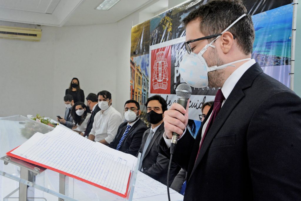 O vice-prefeito de João Pessoa, Leo Bezerra, empossou o novo Procurador do Município, Mateus Scipião Moura, durante cerimônia realizada nesta sexta-feira (14), no Paço Municipal. O evento também contou com a participação do Procurador Geral do Município (PGM), Bruno Nóbrega.