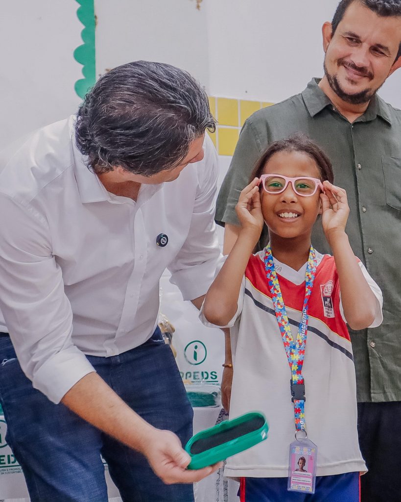Escola inclusiva e humana – Priscila Raiane, 10 anos, é portadora do espectro autista e uma das beneficiadas com a ação – ela recebeu das mãos do prefeito em exercício os óculos que vão fazer a estudante enxergar uma nova perspectiva. A sua mãe, Renata Raquel, comemorou e agradeceu o cuidado da Prefeitura de João Pessoa, citando a escola inclusiva e humanizada.