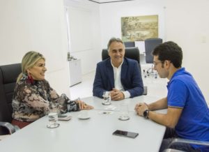 O prefeito de João Pessoa, Luciano Cartaxo, recebeu a visita da deputada federal Edna Henrique, do PSDB, e de seu filho o presidente estadual do PROS, Michel Henrique, nesta sexta-feira (10), em seu gabinete no Centro Administrativo Municipal (CAM). A parlamentar destacou a destinação de R$ 2 milhões em emendas parlamentares para a saúde de João Pessoa e parabenizou o prefeito pela gestão da saúde da Capital.