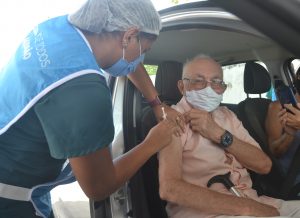 Mais de 2,1 mil pessoas foram vacinadas no segundo dia de imunização em pontos de drive thru