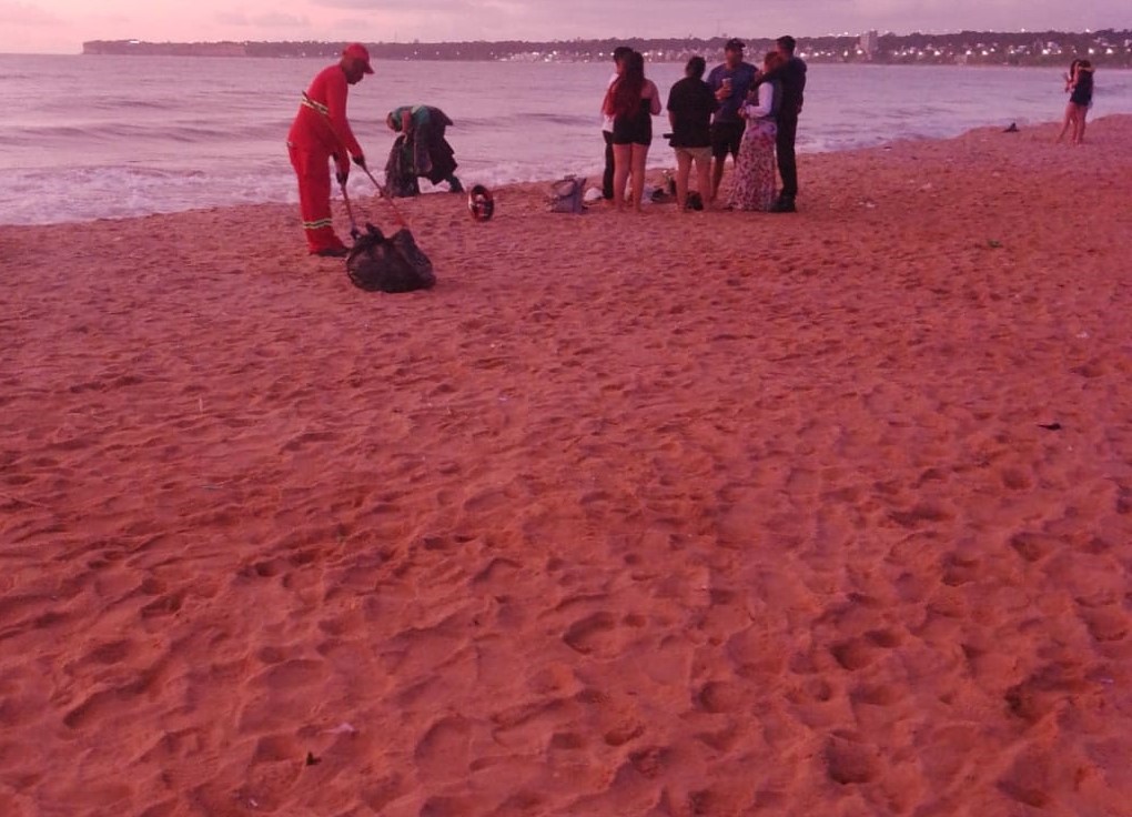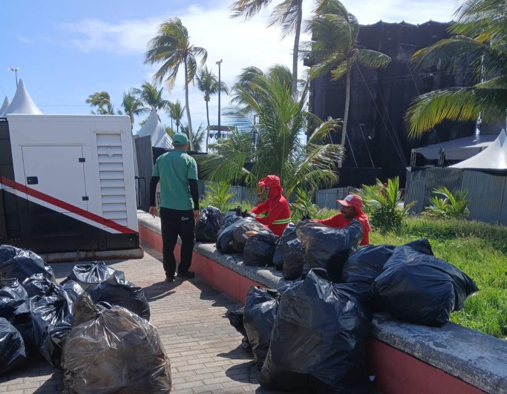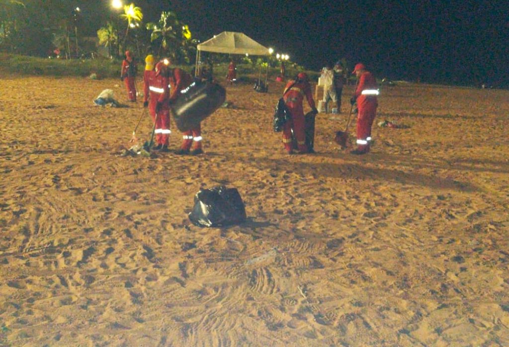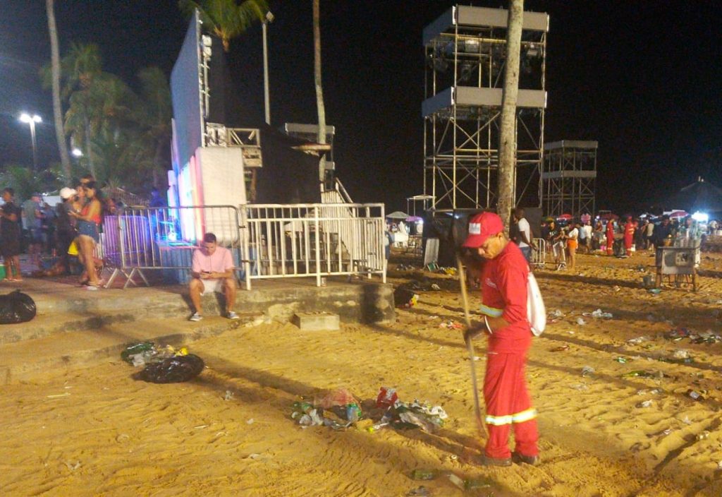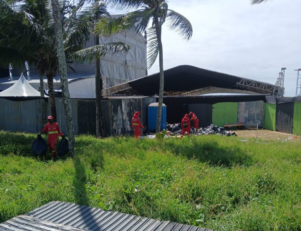 Mais de 250 agentes de limpeza realizam coleta de resíduos após show na praia