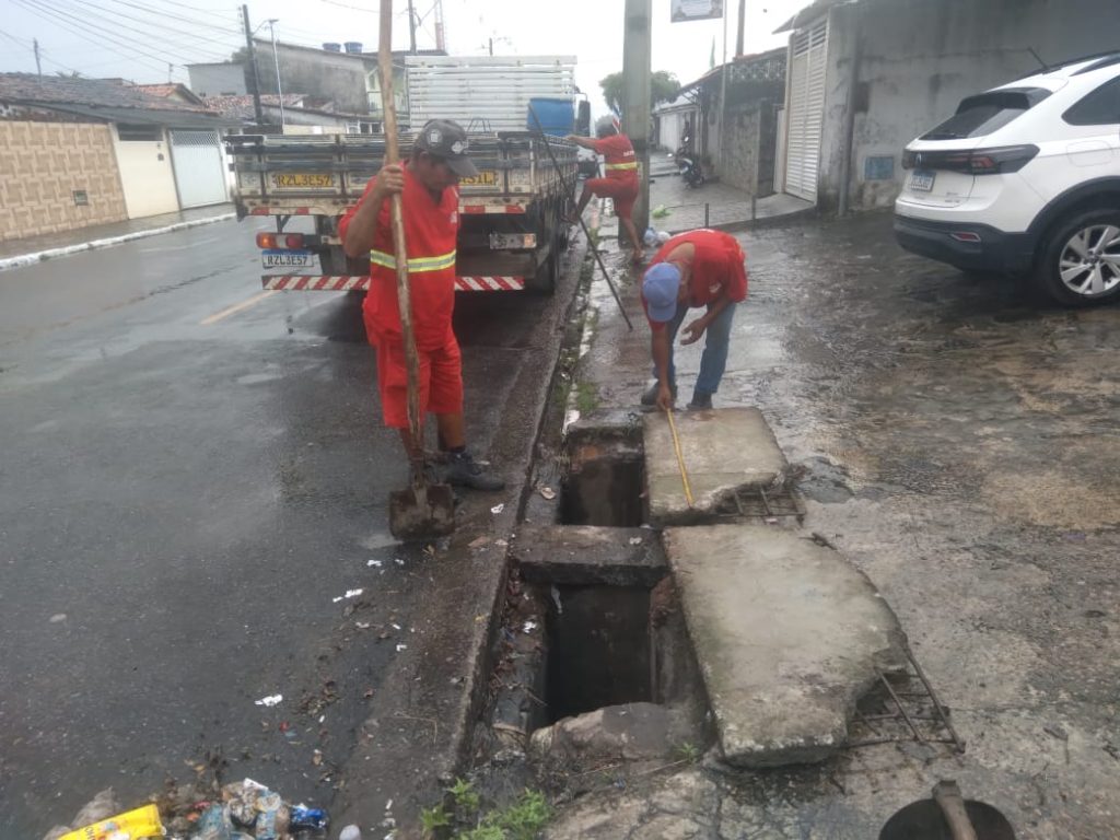 As equipes de manutenção na rede de drenagem realizam serviços de limpeza e desobstrução de galerias com remoção de entulhos nos bairros de Esplanada, Mandacaru, Cabo Branco, Mangabeira VIII e Bancários.