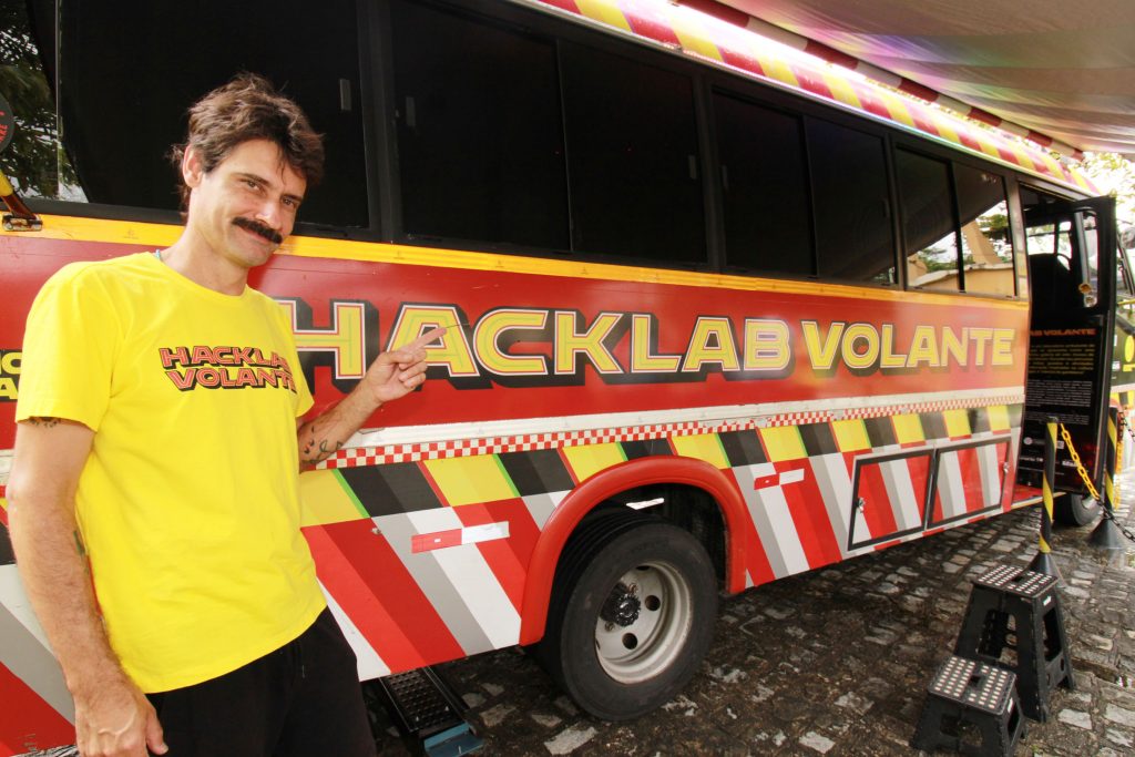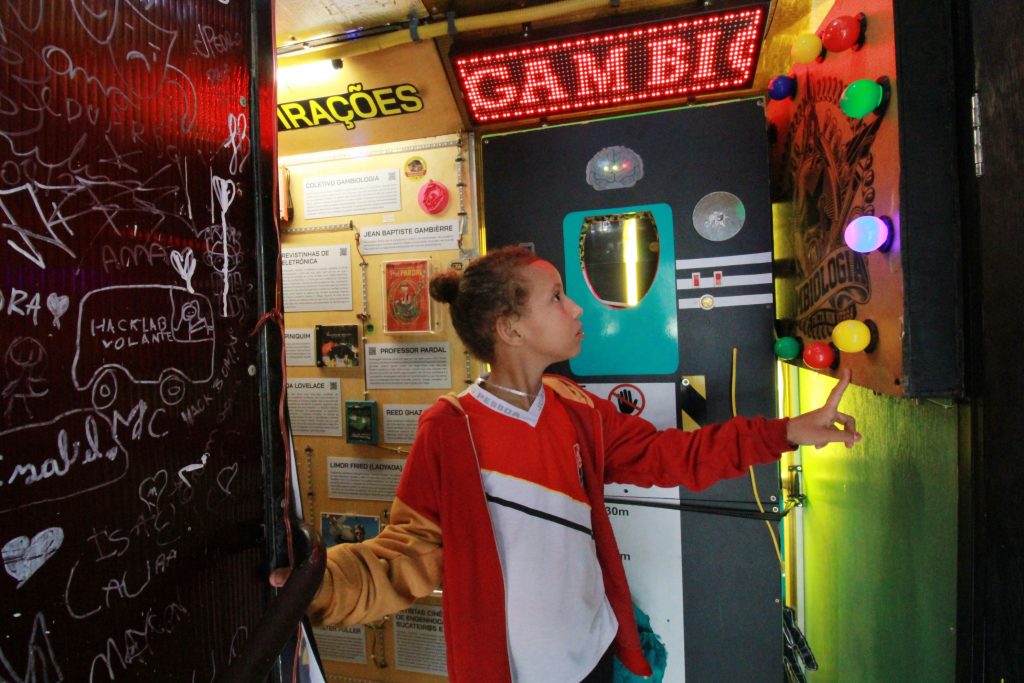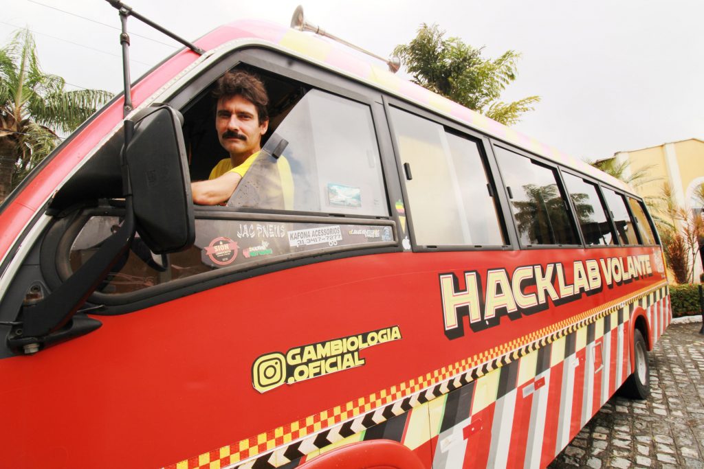 “O projeto ‘Hacklab Volante’ existe desde 2022. A “gambiologia” é um projeto nosso que traz uma abordagem sobre arte e tecnologia usando gambiarra como inspiração. A gente pensa esse universo da arte, da tecnologia de uma forma que é conectada à educação, à visão de sustentabilidade, de reaproveitamento de materiais, de cultura brasileira. Então, gambiarra acaba sendo uma metáfora para a gente acessar todos esses universos e o ônibus traz uma exposição coletiva de obras de arte que propõe essa relação”, explicou o idealizador do projeto, Fred Paulino.