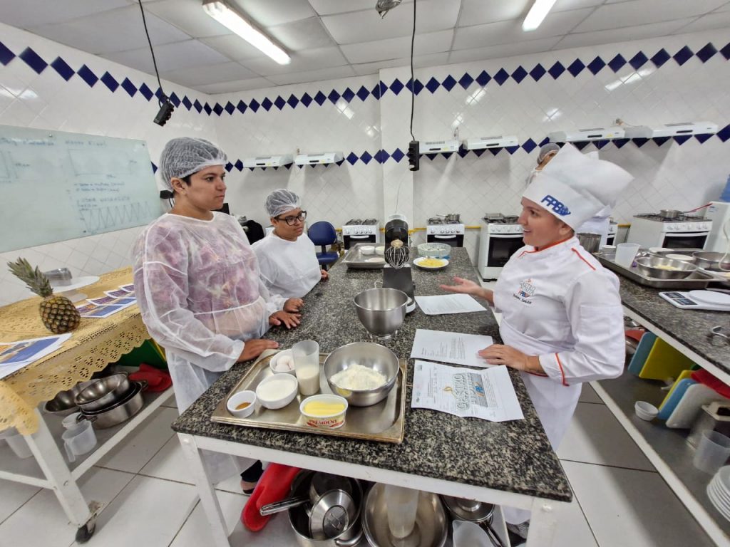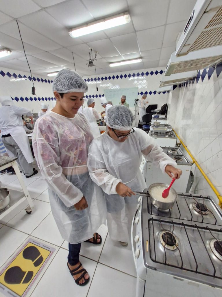 Oficina de Gastronomia – O projeto da Oficina de Gastronomia do curso de Gastronomia da Faculdade Internacional da Paraíba – FPB, é coordenado pelo Professor Tassio Medeiros e tem como proposta usar a cozinha para educar e transformar a vida das pessoas, principalmente aquelas que já tem um trabalho na área de culinária. Mayara Suele dos Santos Silva e Karen Christine de Sá Cordeiro são moradoras do Residencial Vista Alegre IV e já trabalham com a produção de doces e salgados.
