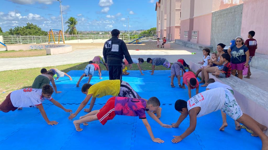 Ela contou que nesta quinta-feira, um grupo de crianças e adolescentes do Residencial Vista Alegre, em Colinas do Sul, participou de uma oficina de Jiu Jitsu, coordenada pelo professor Filipe, que foi cedido pela Sejer. Na ocasião, os jovens receberam informações desse esporte e fizeram exercícios no tatame para conhecer um pouco mais da dinâmica dessa modalidade. “Para esses jovens tem sido uma oportunidade única participar e nós levamos isso para a realidade deles dentro dos condomínios, onde montamos uma pequena estrutura para recebê-los”.