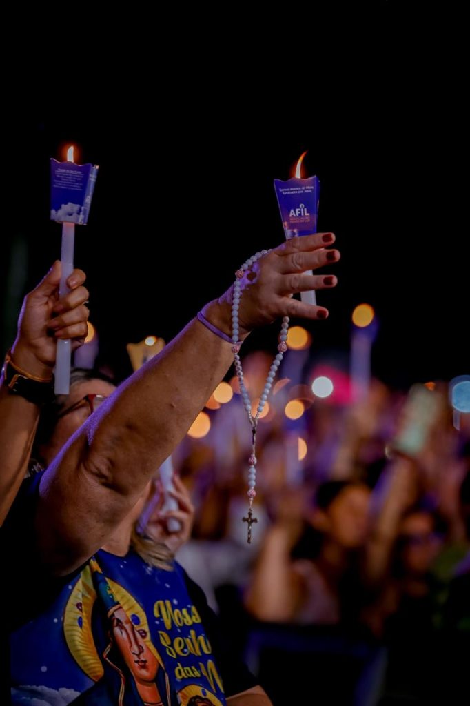 Público – A aposentada Geralda Maria de Oliveira Silva é católica e não perde a oportunidade de ver de perto os representantes da igreja. Na noite desta quinta-feira, ela foi acompanhar o show do padre Nilson Nunes. “Este é o segundo dia que venho e sempre procuro chegar cedo na programação religiosa. É muito bom participar”, afirmou.