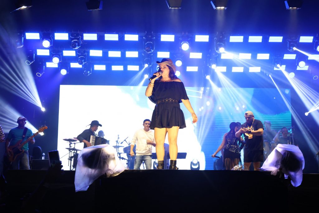 No show de Myra Maia, o público curtiu músicas como Espumas ao Vento, de Flávio José; Sonho de amor, canção que marcou sua trajetória em todas as temporadas do ano; além de músicas que lançou nas plataformas digitais como Eu juro, além de uma versão de O amor e o poder, de Rosana, no ritmo do forró. “Muito feliz de poder compartilhar isso hoje”.