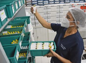 “Desde pequena eu escolhi ser farmacêutica, por ter essa aproximação com o paciente. É uma profissão que está perto das pessoas, acompanhando a situação dela junto ao médico, conferindo se determinado medicamento vai mesmo alcançar o objetivo”, declarou Veruza Lima, farmacêutica há mais de 15 anos – do quadro de servidores do Hospital Municipal Santa Isabel desde o início de 2021. “O médico prescreve, a gente avalia e dispensa conforme a solicitação. É uma rotina prazerosa e que a gente cumpre com muito amor”, completou.