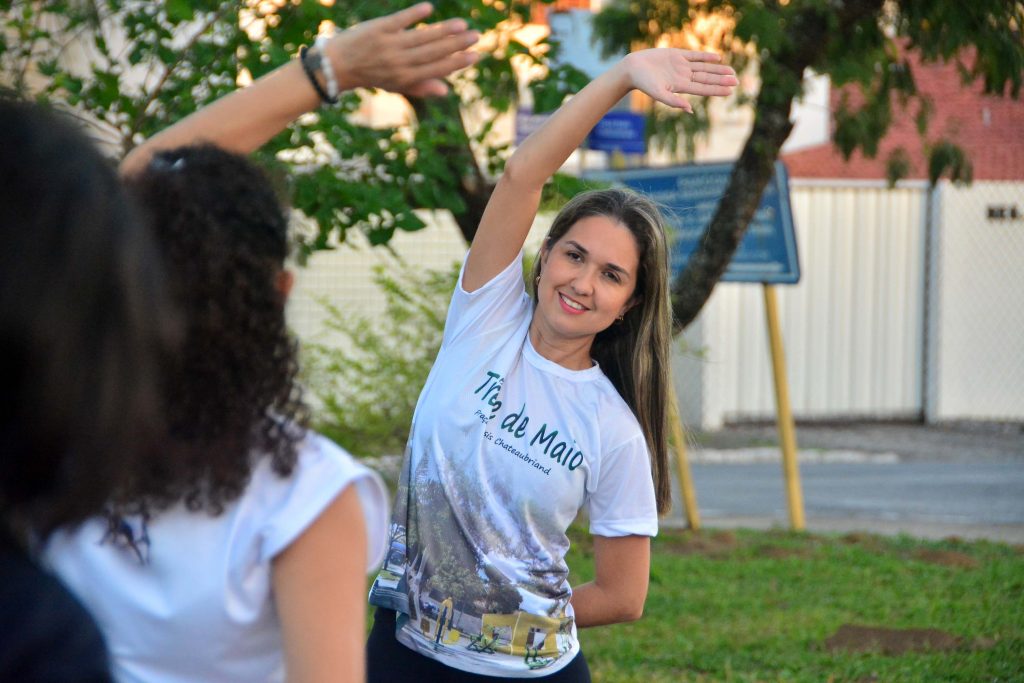 Uma das profissionais que fazem a diferença no Saúde em Movimento é a educadora física Mônica Cabral. Formada desde 2008, ela entrou para o projeto quando ainda estava na universidade e hoje comanda as turmas na Praça Assis Chateaubriand, no bairro Treze de Maio. A professora falou da satisfação de levar bem-estar e qualidade de vida para tantas pessoas através do projeto.