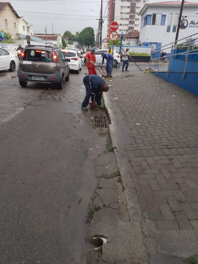 Desobstrução de galerias – Equipes da Secretaria Municipal de Infraestrutura (Seinfra) realizaram durante todo o dia, e continuarão realizando, serviços de limpeza e desobstrução de galerias em pontos de alagamento.