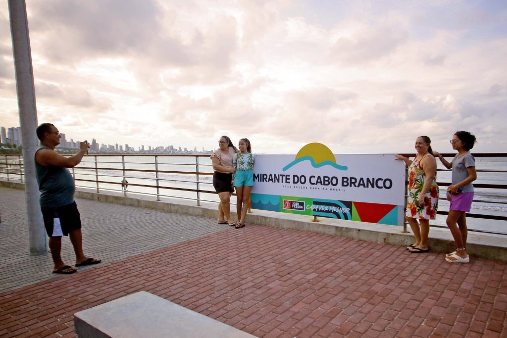 O novo Mirante do Cabo Branco, restaurado recentemente pela Prefeitura de João Pessoa, atraiu dezenas de pessoenses e turistas nesta quarta-feira, feriado de 1º de Maio – Dia do Trabalho. Além de contemplar o mar e o pôr do sol, os visitantes contam com espaços de convivência, wi-fi gratuito e acessibilidade. O espaço foi inaugurado no final de março, após a execução da obra de contenção do avanço do mar, com o objetivo de melhorar a qualidade de vida da população e fortalecer o turismo na Capital. O projeto foi executado em duas etapas com investimentos de R$ 6,9 milhões.