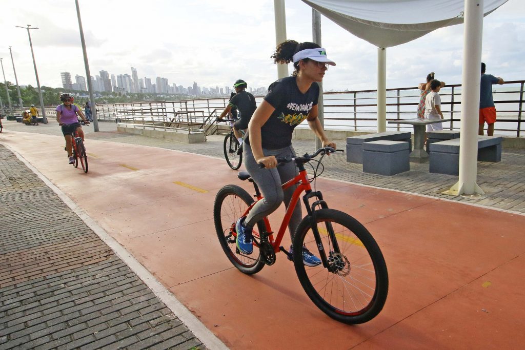 As amigas Juliane Santana e Rosicleia Gomes moram em Santa Rita, mas vêm toda semana para a praia de Cabo Branco para praticar esportes. “A revitalização desse espaço ficou muito boa. A gente sempre vem para caminhar e andar de bicicleta, entre duas e três vezes por semana”, disse Juliane. “E sempre aproveitamos para ver o pôr do sol”, completa Rosicleia.
