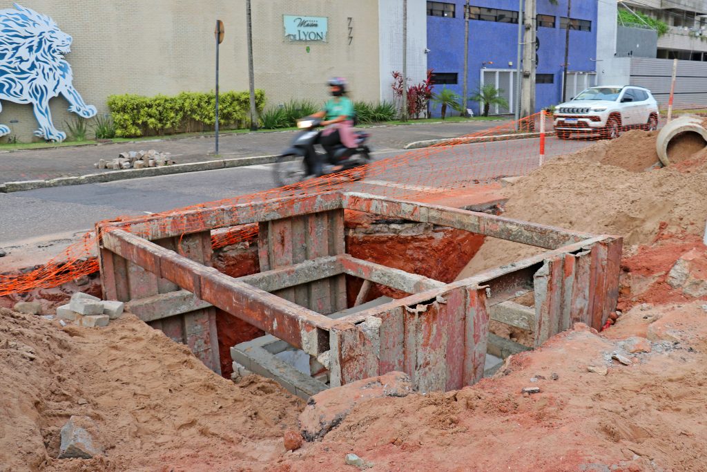 “Obra de drenagem é a execução de uma rede que tem a finalidade de captar e direcionar o destino final das águas pluviais. Isso traz conforto para o usuário, porque evita transtornos. Reduz a lentidão no trânsito e o deixa mais fluido, também evita danos no recapeamento”, destacou Otto Araújo, diretor de Manutenção e Conservação da Seinfra.