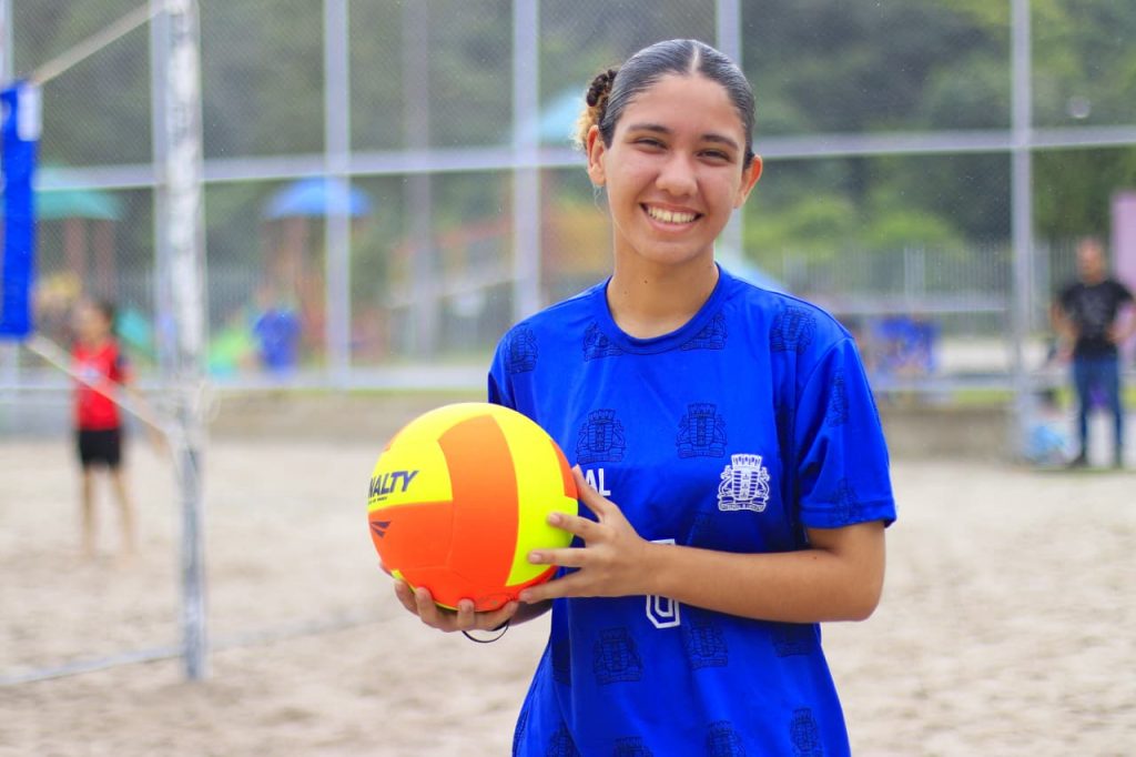 Já Ana Clara, de 14 anos, é aluna do 9º ano da Escola Bilíngue Dom José Maria Pires e falou sobre sua motivação em participar da modalidade vôlei de praia, além da sua pretensão em continuar no caminho do esporte quando chegar ao Ensino Médio “O que me motivou a jogar foi o amor que eu sinto pelo vôlei. Infelizmente, no vôlei de quadra fomos desclassificadas logo no começo, mas também estou jogando vôlei de praia e minha professora é ótima, ela nos ajudou muito. Quero muito participar dos estaduais de vôlei quando chegar ao Ensino Médio”, completou.